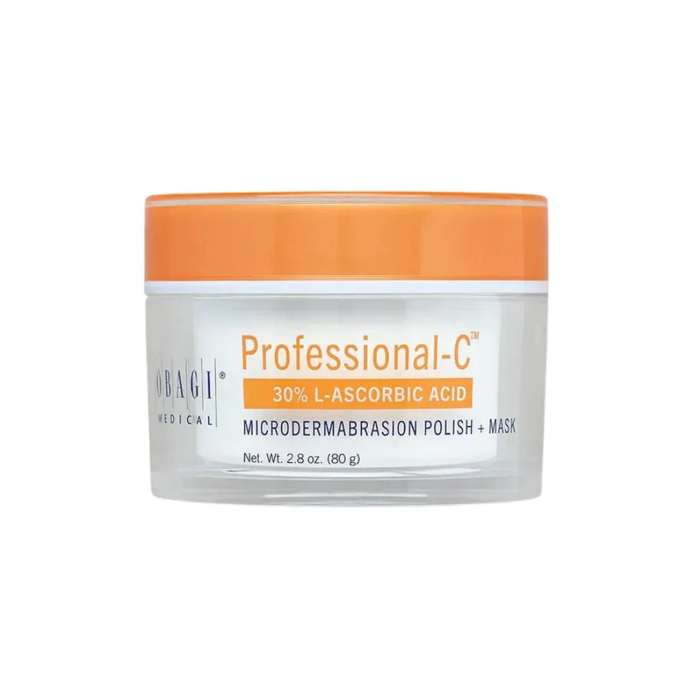 Obagi Medical Professional-C Polish + Mask er en multitaskende ansiktsmaske som eksfolierer og forbereder huden på en kraftfull infusjon av 30% vitamin C, som gir en dramatisk klarere, glattere og yngre hud. Masken inneholder ultrasmå krystaller som effektivt fjerner det overflødige laget av epidermis, samt rester av produkter som ligger på overflaten. Huden etterlates sunn og glødende, takket være Sea Berry Fruit Oil.
