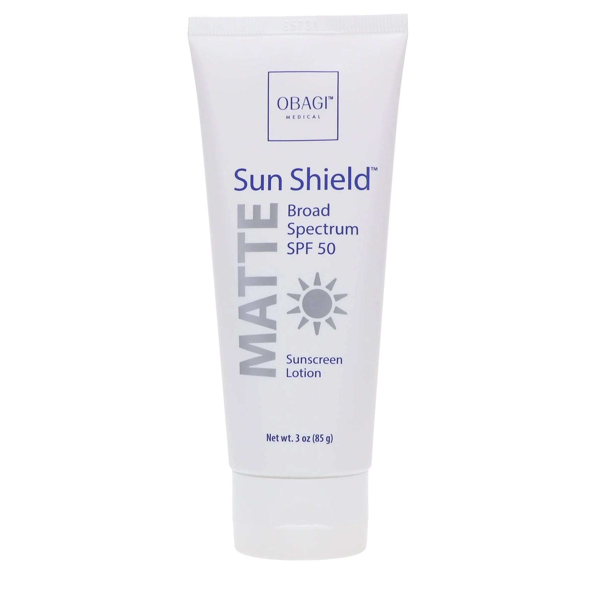 Sun Shield Matte SPF50 fra Obagi Medical beskytter huden mot solens skadelige stråler og forhindrer tidlige aldringstegn. Kremen har en lett tekstur og absorberes raskt samt gir en matt finish. C-vitamin lysner hudfargen mens ubikinon fremmer fasthet og nøytraliserer frie radikaler. Passer for alle hudtyper.
